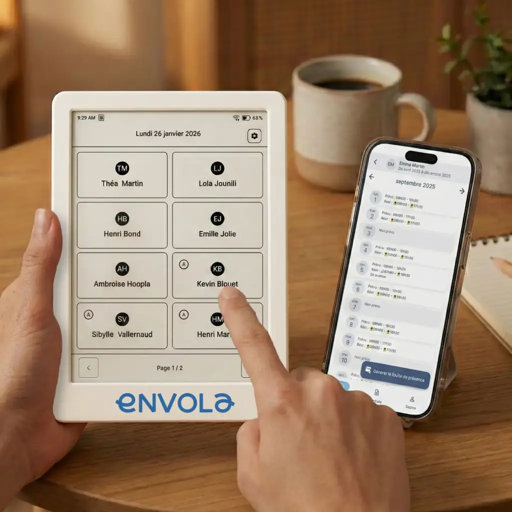 Fini les feuilles à remplir ou les oublis d’horaires. Tout est noté automatiquement par les parents à l’arrivée et au départ de leurs enfants.